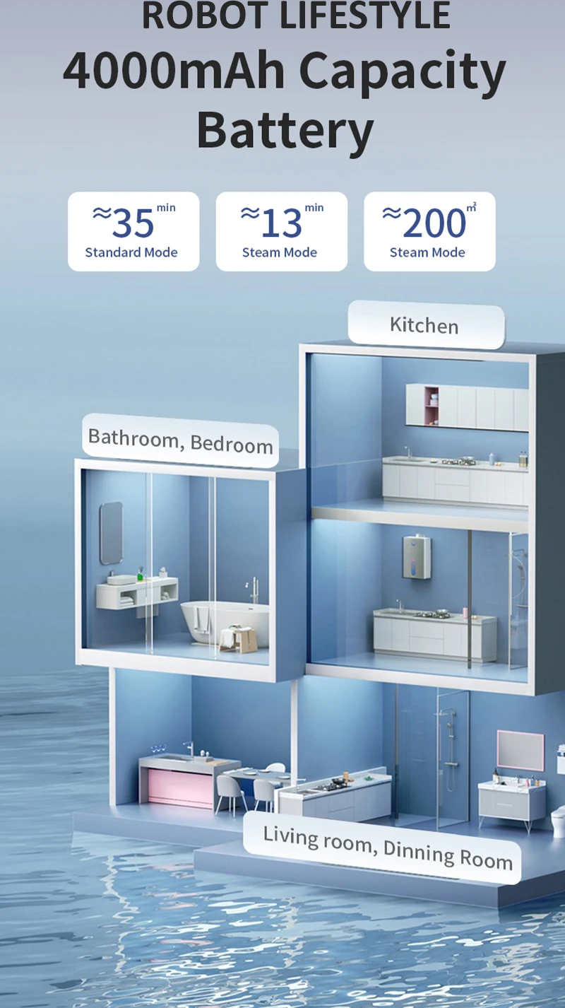 ≈35min Standard Mode / ≈13min Steam Mode / ≈2001㎡ Steam Mode