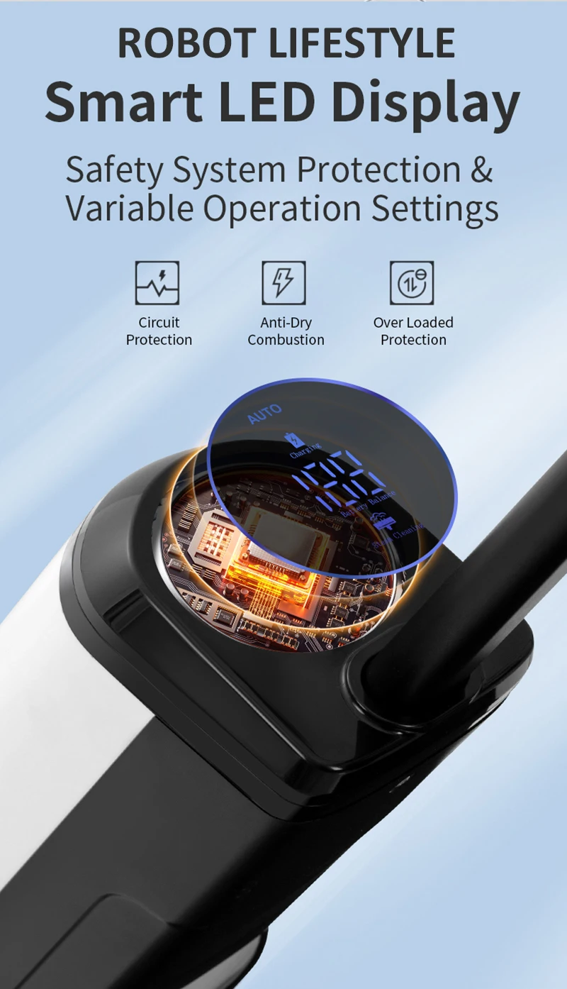 3 in 1 Base Charging, cleaning &Storing / Up to 60° Inclination Angle / Intelligent Display / Special Lock Design Easily Fasten the Brush