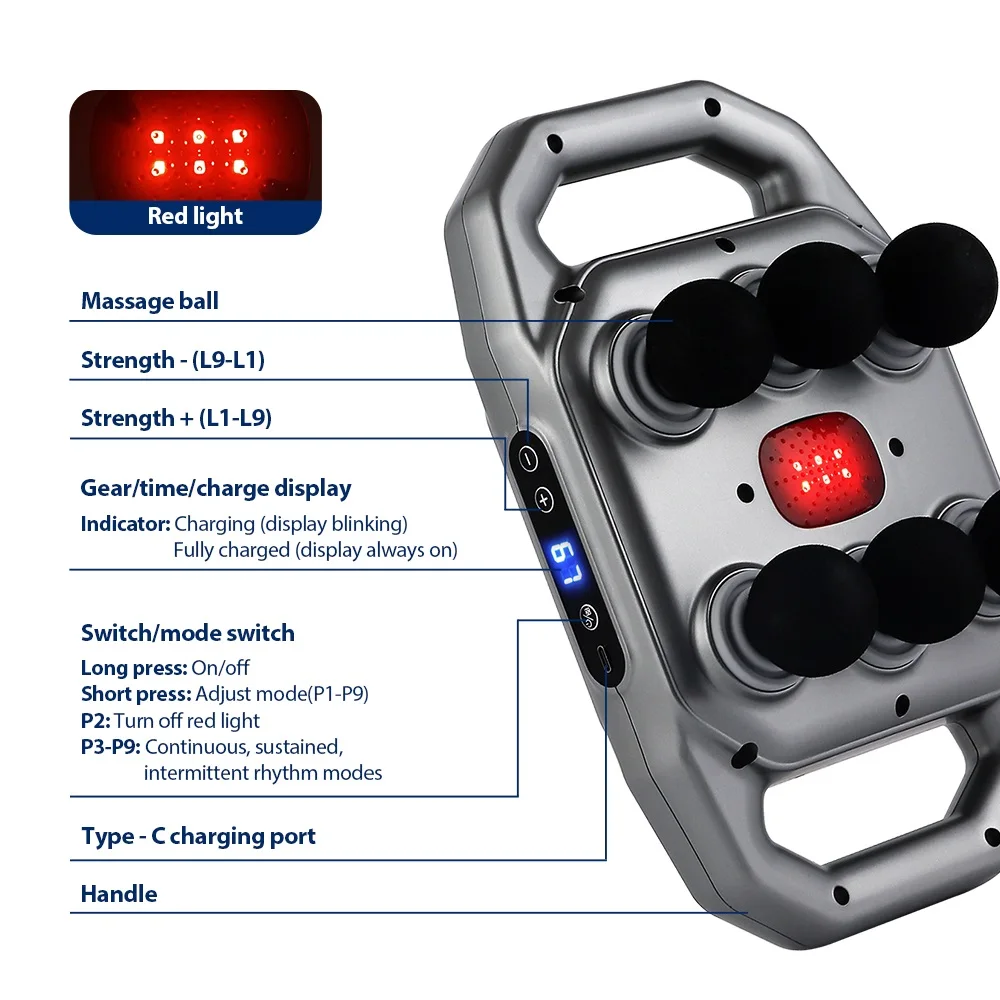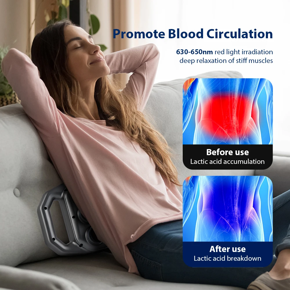 2.Promote blood circulation. 2-in-1 massage + 630-650nm red light irradiation, deep relaxation of stiff muscles, double the effect.